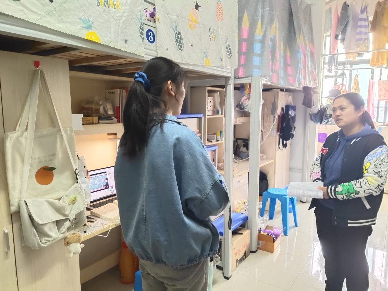 走访过程中,辅导员与转专业学生们亲切交谈,询问转入后的课程选修、教材申领、课业进度、宿舍生活等情况,嘱咐转入同学要尽快适用新环境,努力克服跨专业带来的困难,以崭新的精神面貌全身心地投入到学习中;要积极融入新班级,珍惜室友情、同学情;要注意人身财产安全、宿舍卫生、用电安全等。同时,要求其他同学积极帮助新转入的同学,遇到困难要第一时间向辅导员反映。