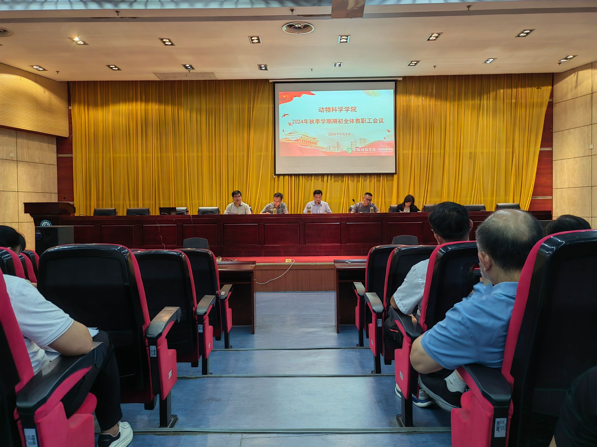 9月4日下午,动物科学学院在图书馆二楼会议室召开2024年秋季学期期初全体教职工会议,学院党政领导及全体教职工参加会议,会议由学院党委书记程斌主持。