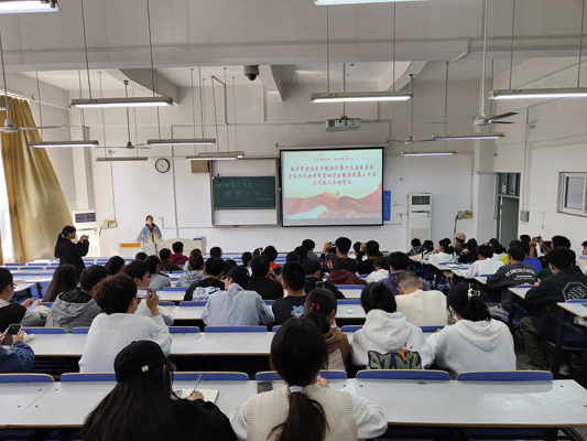 范馨雅对党的二十大内容进行简单介绍,指出党的二十大具有划时代的重大意义,是在全党全国各族人民迈上全面建设社会主义现代化国家新征程、向第二个百年奋斗目标进军的关键时刻召开的一次十分重要的大会,同学们要积极响应习近平总书记的号召,要以自信自强、守正创新,踔厉奋发、勇毅前行的精神状态迎接新的挑战。