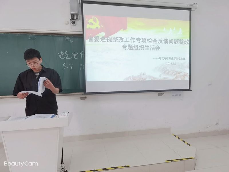 为进一步发挥基层党组织战斗堡垒作用和党员先锋模范作用,在电气与电子工程学院党委统一部署下,电气电信专业学生党支部于5月7日下午4点,在致知楼C205开展省委巡视整改工作专项检查反馈问题整改专题组织生活会。会议由支部书记洪乃羽主持,学院党委副书记尚磊及支部党员参加了会议。