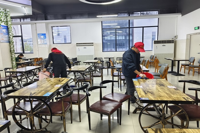 动”。志愿者们在帮助食堂阿姨打扫餐桌、为同学们打饭的过程中,号召大家珍惜粮食,拒绝浪费。