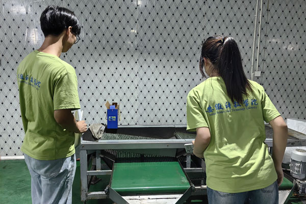 首日,团队成员来到怀宁县裕丰生态农业蓝莓基地,先后参观了蓝莓种植地、蓝莓分拣装置、蓝莓采摘过程。负责人向团队介绍了蓝莓的种植技术和管理方法,团队成员了解到,蓝莓分拣装置是现代农业的重要技术之一,该装置采用先进的图像识别技术,能够对蓝莓进行自动化分拣,提高生产效率,降低劳动成本。