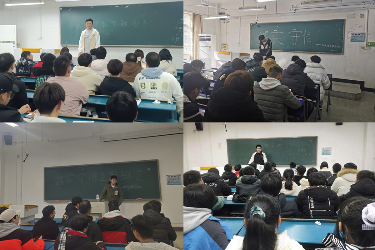 会上,邱杰围绕诚信考试进行了主题教育,布置相关工作任务,重点强调了诚信的重要性和失信的危害性,指出守信好处多、失信寸步难;要求同学们增强诚信意识,怀着诚实不欺的心并付诸实际行动。邱杰特别提醒,在考试中违纪就是严重的失信行为,要求大家严格遵守考试纪律,杜绝作弊行为。邱杰结合宣讲《欧亿官方网页版学生违纪处分办法》和2016年以来有关考试违纪的典型案例,对考试违规行为情形和对应处分种类进行了详细说明,并对各班开展诚实守信主题班会教育活动进行了部署。