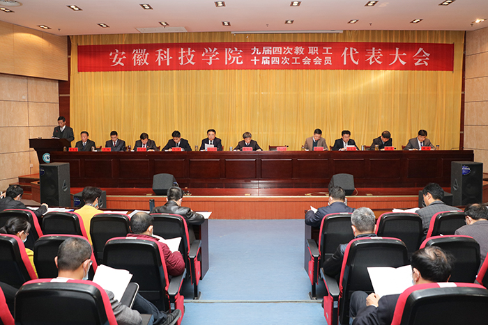 4月8日上午,我校九届四次教代会、十届四次工代会在新图书馆会议中心二楼报告厅开幕。校党委书记蒋德勤,党委副书记、校长李震,党委副书记韦文联,党委委员、副校长黄远友,党委委员、纪委书记王强,党委委员、副校长黄友锐,党委委员、副校长李升和,督导员郭亮,党委委员、宣传(统战)部部长卫胜,党委委员、组织部部长钱锐,校工会主席李永生等出席开幕式并在主席台就坐。韦文联主持开幕式并宣布九届四次教代会、十届四次工代会开幕。