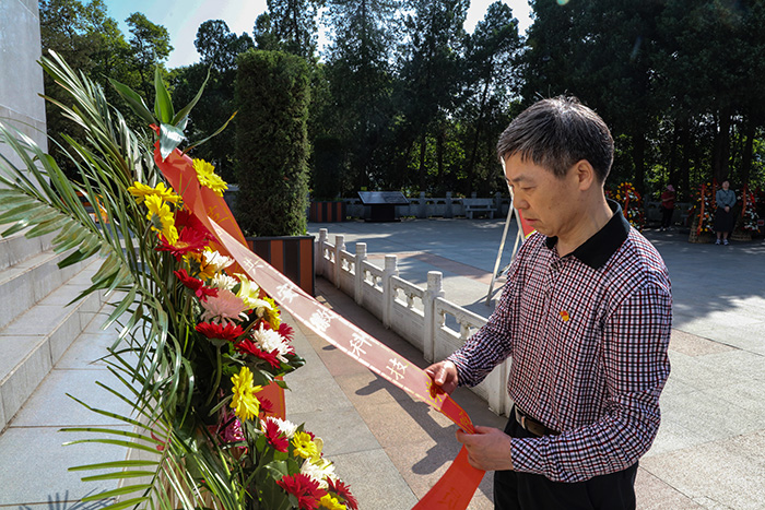 9日上午,全体成员来到金寨县红军广场,瞻仰革命烈士纪念塔,向革命烈士敬献花篮并深深三鞠躬。在纪念塔下,蒋德勤带领全体成员面对党旗重温入党誓词,深切缅怀革命先辈英勇无畏的革命精神,感悟革命老区大地上奔涌的红色血脉。全体成员还参观了红军纪念堂、洪学智将军墓园、红军墓园和金寨县革命博物馆,透过珍贵的文物史料、感人的革命故事,真切感受金寨“一寸山河一寸血,一抔热土一抔魂”的光辉历史,感悟共产党员的初心使命、为国为民的赤子情怀,从中汲取不断奋进的力量。