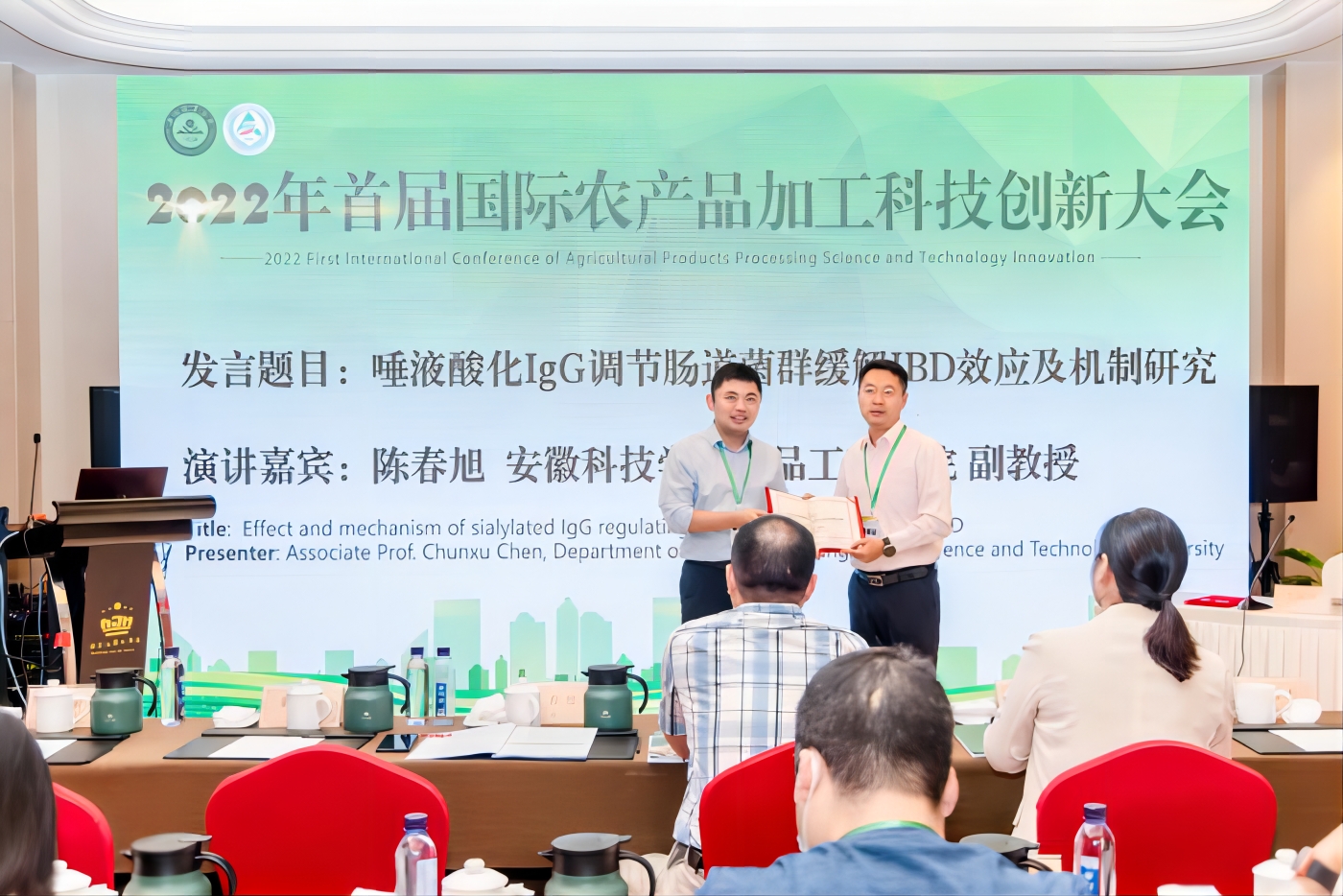 为推进农产品加工科技创新,促进成果转化与科技合作,推动农产品加工产业健康可持续发展,由安徽农业大学主办,合肥工业大学、欧亿官方网页版、滁州学院、皖西学院等单位承办的“2022年首届国际农产品加工科技创新大会”于2022年9月22-24日在安徽合肥召开,由中国工程院院士朱蓓薇教授和谢明勇教授共同担任大会主席。本次大会就国内外农产品贮藏加工技术的研究进展与动态,新成果展示与全产业链对接等进行了深入交流,共谋农产品加工业产业大计。我校党委委员、副院长李升和带领食品工程学院院长杜传来、副院长翟立公和院青年教师陈春旭、杨丽萍、卫兰兰、于鲲、魏照辉及6名研究生应邀参会。
