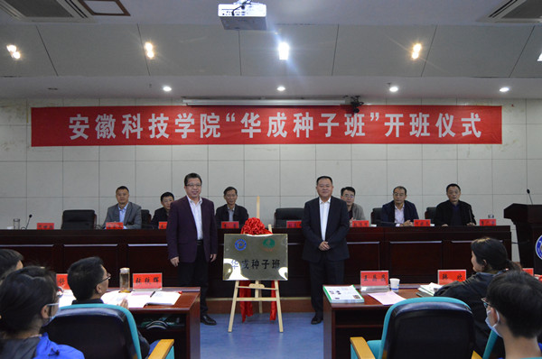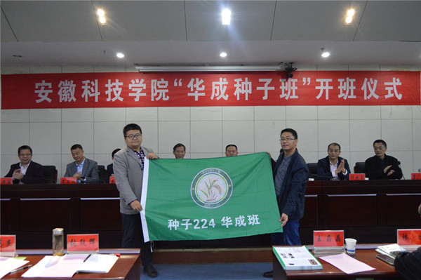 10月19日下午,我校农学院在凤阳校区会议中心一楼报告厅举行“华成种子班”开班仪式。校党委副书记、院长李震应邀出席并发表讲话。校教务处处长、创新创业学院院长赵伟峰,党委学工部部长、学生处处长黄立义,招生与就业工作处副处长何晓冬;安徽华成种业股份有限公司董事长刘良柏,总经理王平信,董事会秘书、人力资源部部长王晶晶,党政办主任、宣传部部长韩欢;农学院党政领导、教师代表、辅导员代表、“华成种子班”行政班主任、专业班主任和全体学生参加仪式。开班式由农学院党委副书记、院长崔广荣主持。