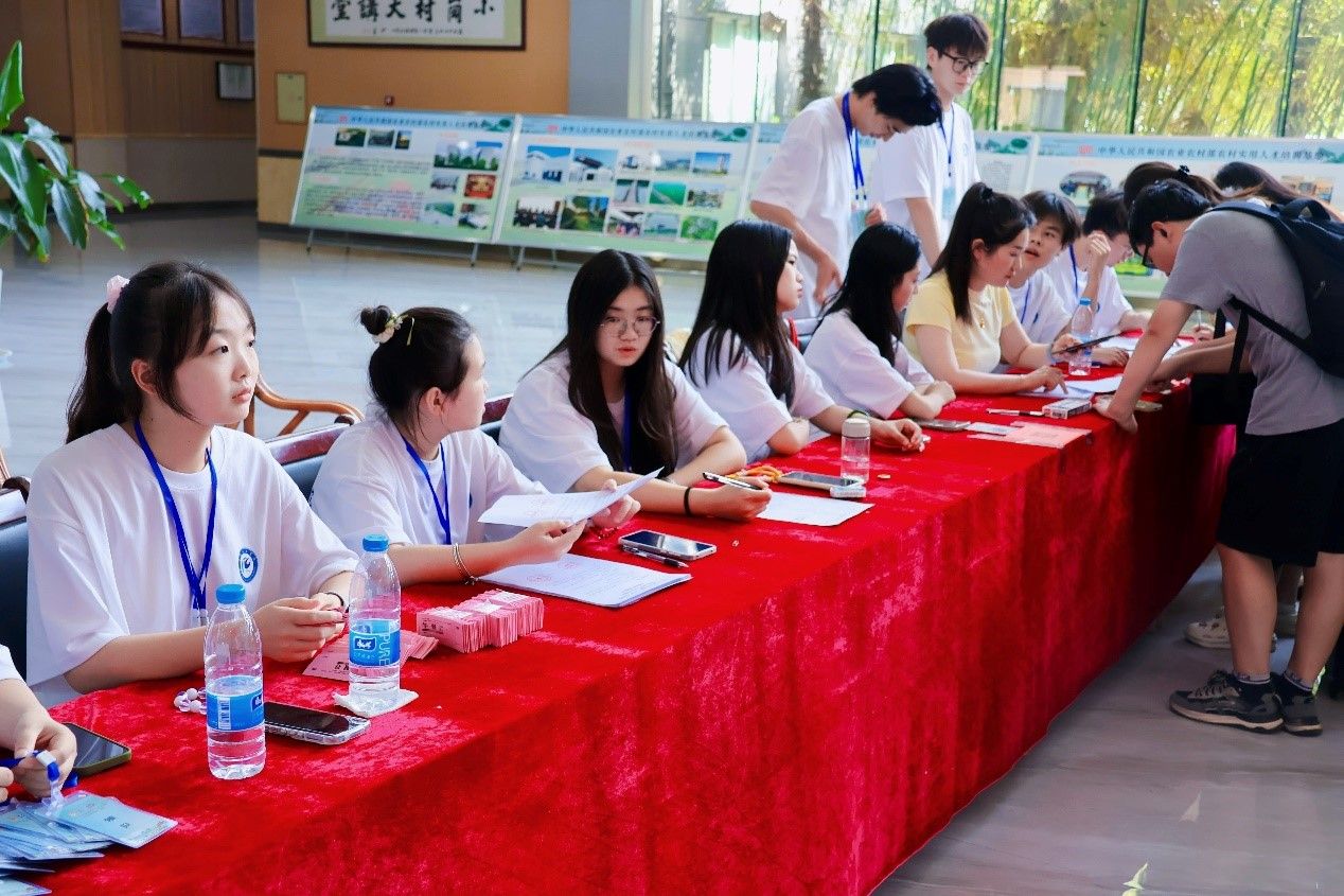 为保障300余名师生顺利报到,团队提前规划部署,13名队员分为签到引导组、缴费事务组、物料发放组三大执行板块,并设立综合协调组统筹全局,形成“三横一纵”的服务矩阵。各小组既各司其职又密切协作,通过实时沟通机制实现信息无缝流转。签到引导组驻守报到大厅前沿,用清晰指引帮助初次参与实践的师生快速完成登记,专业服务获带队教师一致点赞;缴费事务组提前联动当地财务部门,针对小岗村部分区域网络信号不稳定的问题,不仅调试好POS机设备,更准备了现金收缴备用方案,确保费用收缴与票据开具零差错、零滞留;物料发放组则创新采用“个人包+团队包”分类打包模式,通过流水线式分发流程,高效完成全部物资发放,现场始终秩序井然。