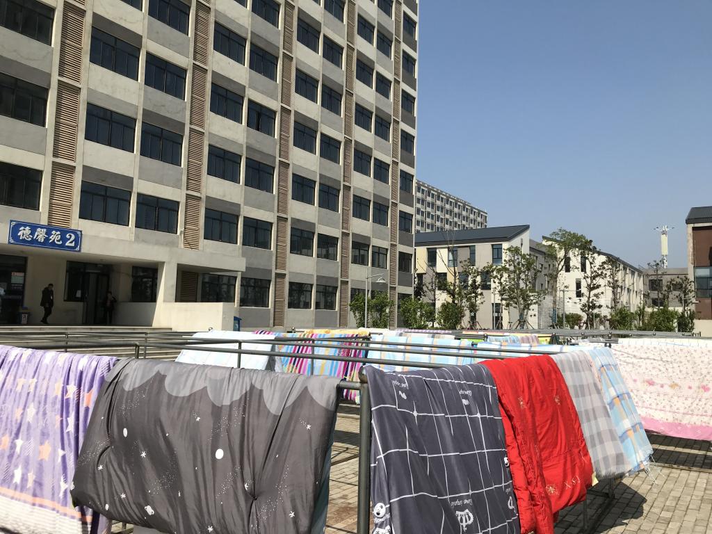 老师们将晾晒被褥的照片发在了QQ群里,学生们纷纷在图片里找寻自己的被子,并纷纷表示会在家里努力学习,真正做到停“课不停学”,同时积极居家锻炼,遵守疫情期间的相关规定,以饱满的热情和积极的状态重返安科校园。