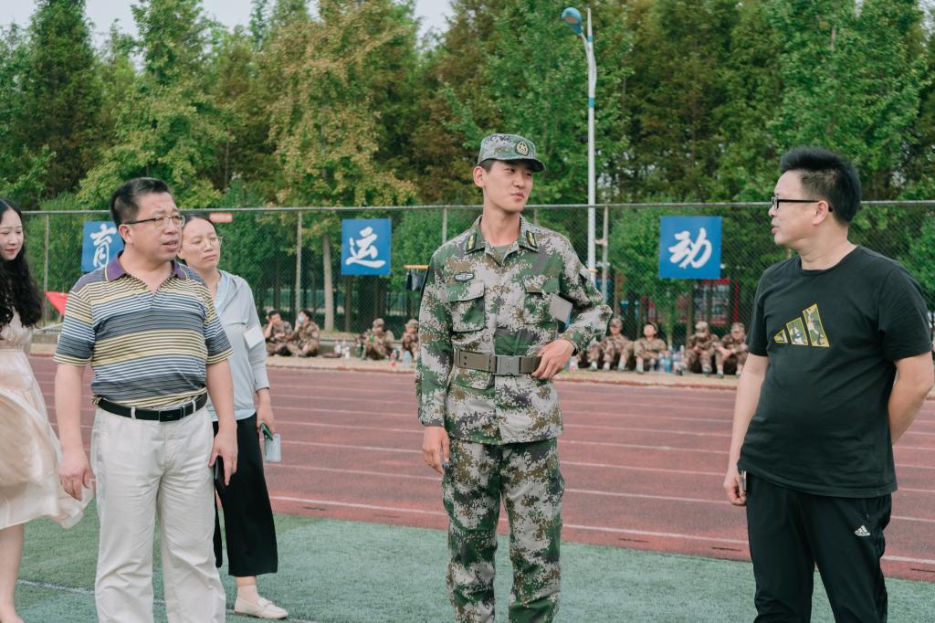何世潮代表学院党委向承训教官表达了诚挚感谢和亲切慰问,高度赞扬了承训教官乐于奉献的吃苦精神和纪律严明、科学有序的工作作风,希望承训教官将百折不挠的意志、坚韧不拔的毅力和不畏艰难的吃苦精神传导给学生,引导他们形成良好的学习和生活习惯,同时强调承训教官要确保训练安全,科学组训。要求各新生辅导员要继续做好军训各项保障工作,确保军训工作圆满顺利完成。