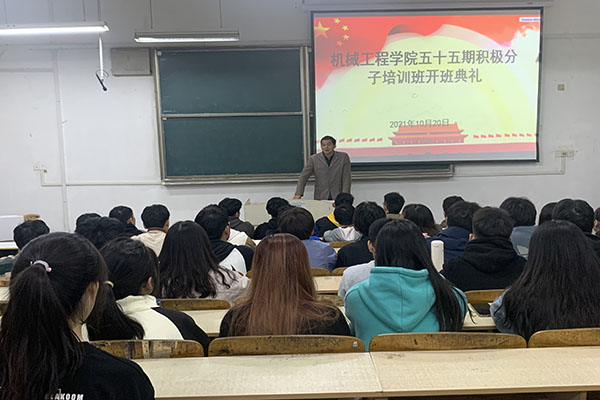 为切实提高入党积极分子培训班学员对党的思想理论认知和认同,强化思想和行动自觉,10月20日下午,机械工程学院在求知楼A103教室举行了第55期入党积极分子培训班开班典礼。全体第55期入党积极分子培训班74名学员参加典礼,学院党委副书记、纪委书记张程出席典礼,典礼由党政办副主任王飞主持。