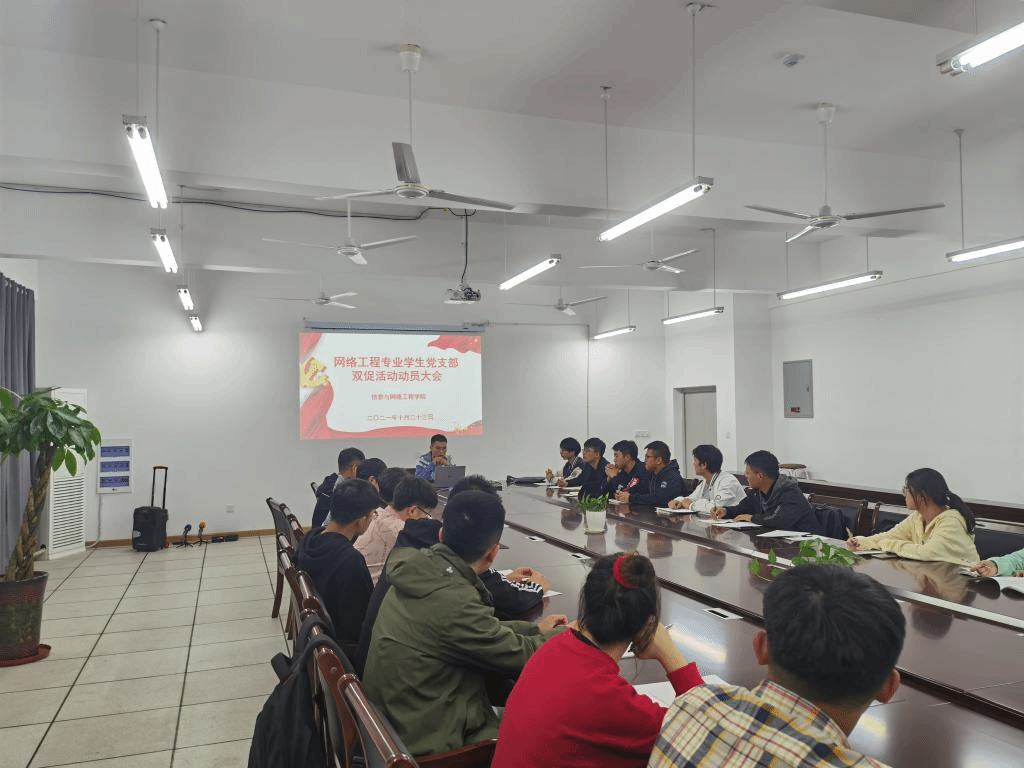 为深入推进党史学习教育,深化“我为群众办实事”实践活动,充分发挥学生党员在班级学风建设和就业工作中的模范带头作用,信息与网络工程学院各学生党支部召开“双促活动”动员大会,会议由各学生党支部书记主持。