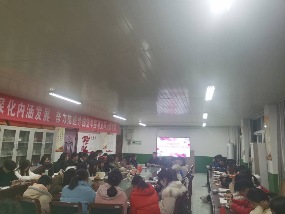 12月6日晚上,外国语学院于院会议室举行参加校第三十届运动会获奖运动员表彰大会暨全体学生干部大会,学院党委副书记张海亮、党政办主任陈慧中、团委副书记宋兵兵、专职辅导员张薇薇出席大会,学院全体学生干部和参加校运动会获奖运动员参会;会议分两个阶段,第一阶段由宋兵兵主持,第二阶段由张海亮主持。