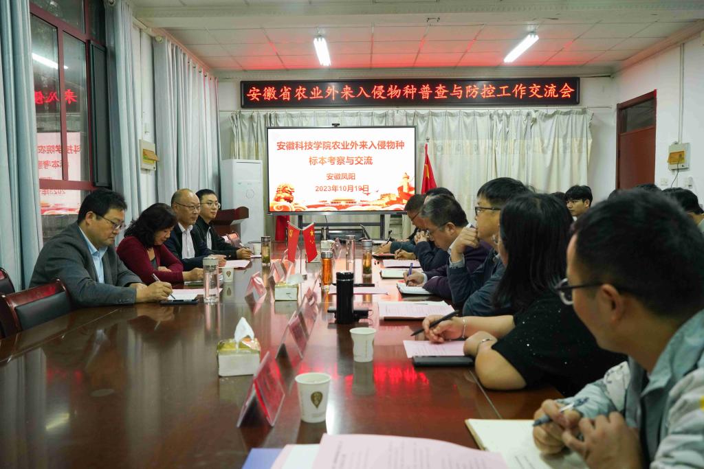 10月19日下午,安徽省农业生态环境总站副站长、省农业外来入侵物种普查与防控领导小组办公室副主任殷雨虹,安徽农业大学教授、省农业外来入侵物种普查与防控专家组组长何金铃,专家组成员张震、张晶旭一行莅临我校农学院考察指导。农学院党委书记何世潮,党委副书记、院长崔广荣带领党政班子全体成员接待了殷雨虹一行。