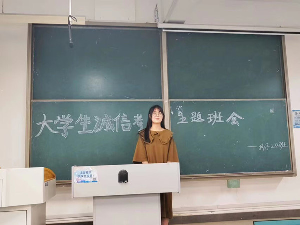 本次诚信考试主题班会有助于严肃考风考纪,营造公平公正,诚实守信的考试氛围;有利于使同学们意识到诚信考试的重要性,为班级学风考风建设营造良好打下坚实基础;有利于督促同学们更加加积极认真的投入到复习之中。(特约通讯员:李娜 审核:张轶辉 摄影:邢雨洁)