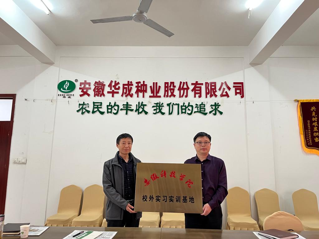 4月14日下午,何世潮一行走访了安徽华成种业有限公司,受到公司董事长刘良柏,副董事长、总经理王平信,常务副总经理郭然,副总经理闫启云、韩欢,财务总监郑杰,董事会秘书、人力资源部部长王晶晶等热情接待。何世潮等通报了双方合作共建的华成种子班人才培养的基本情况,刘良柏表达了公司对农科人才的渴望和大学生实习需求,双方就大学生实习实训安排细节进行了洽谈,举行了基地授牌仪式,并就公司用人需求进行了对接。仪式结束后,在刘良柏、王平信等的陪同下,何世潮一行参观了华成种业置办的现属世界一流的智能化种子生产加工流水线和贮藏烘干检验等设备。
