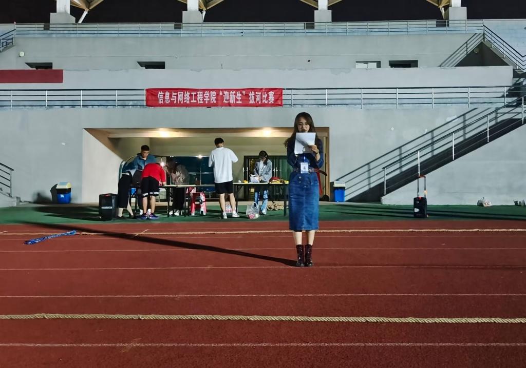 为促进2022级新生之间的交流,丰富学生的课余文化生活。9月24日晚,信息与网络工程学院在龙湖风雨操场举办第六届“新生杯”拔河比赛,本次比赛由网络工程211班王艺陶主持,2022级全体新生参与。