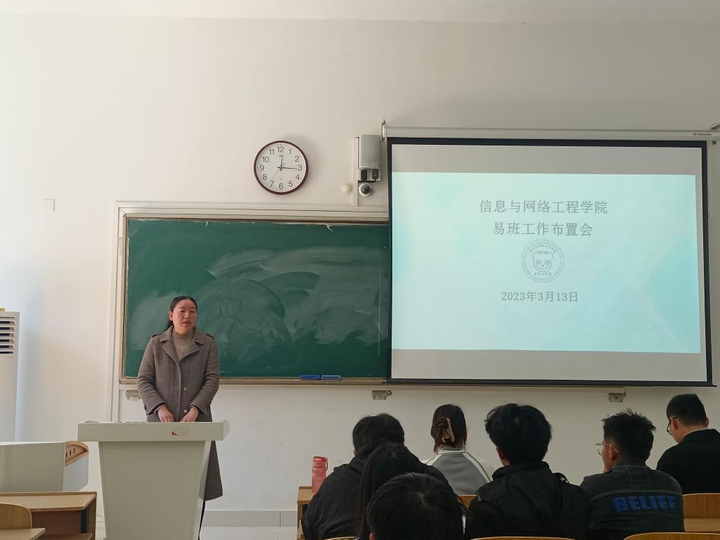 为加强易班工作建设,发挥易班网络思政育人功能,3月13日中午,信息与网络工程学院在致知楼C105召开期初易班工作布置会,学院党委副书记、纪委书记韦乃学、易班工作站全体成员、21级和22级各班易班班长参加会议,会议由易班指导老师李军成主持。