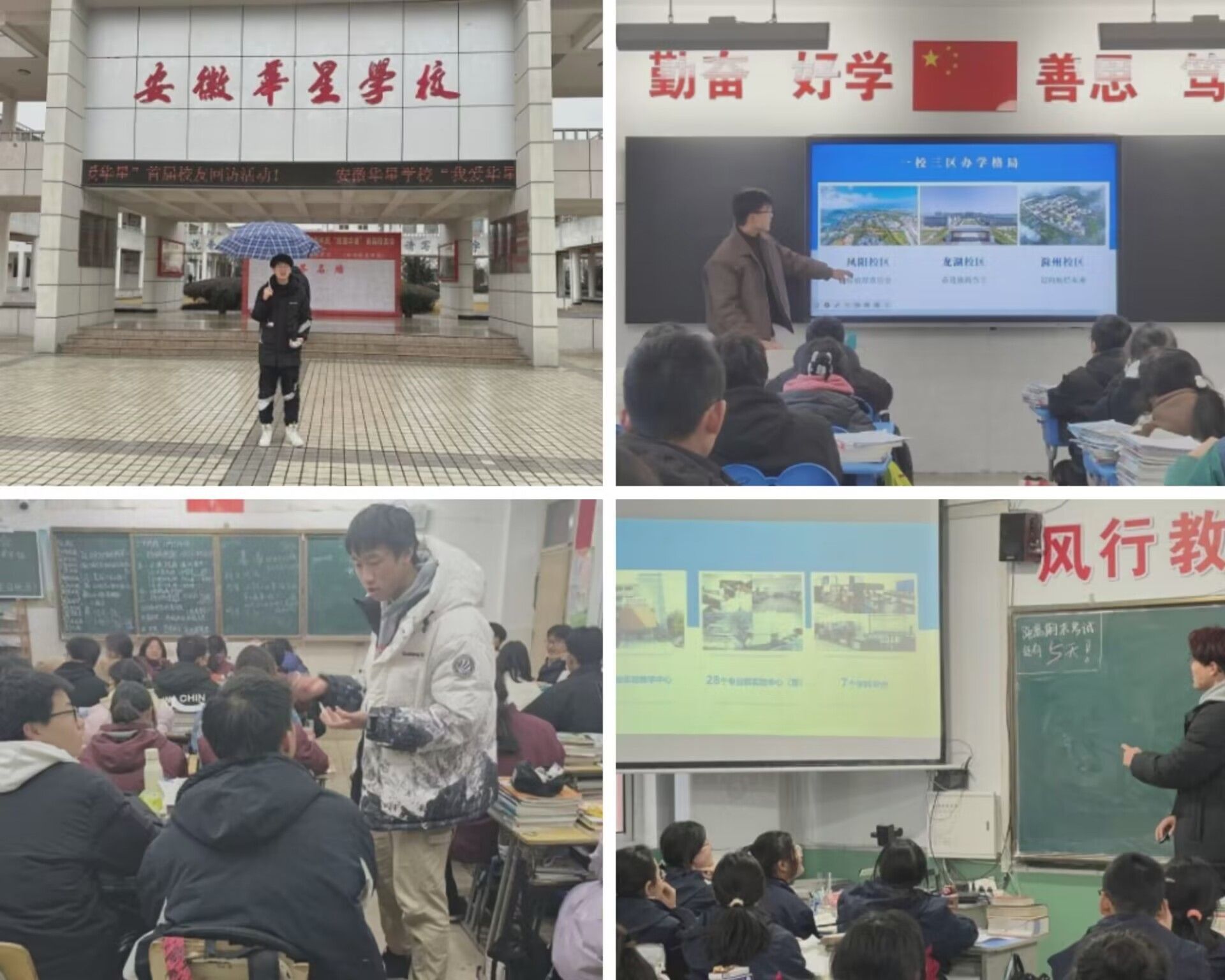 累计5支实践团队前往合肥、六安、安庆等地高中开展“我回母校报喜讯”2024寒假社会实践,例如:长丰一中、肥东锦弘中学、毛坦厂中学、太湖职业技术学校等学校。