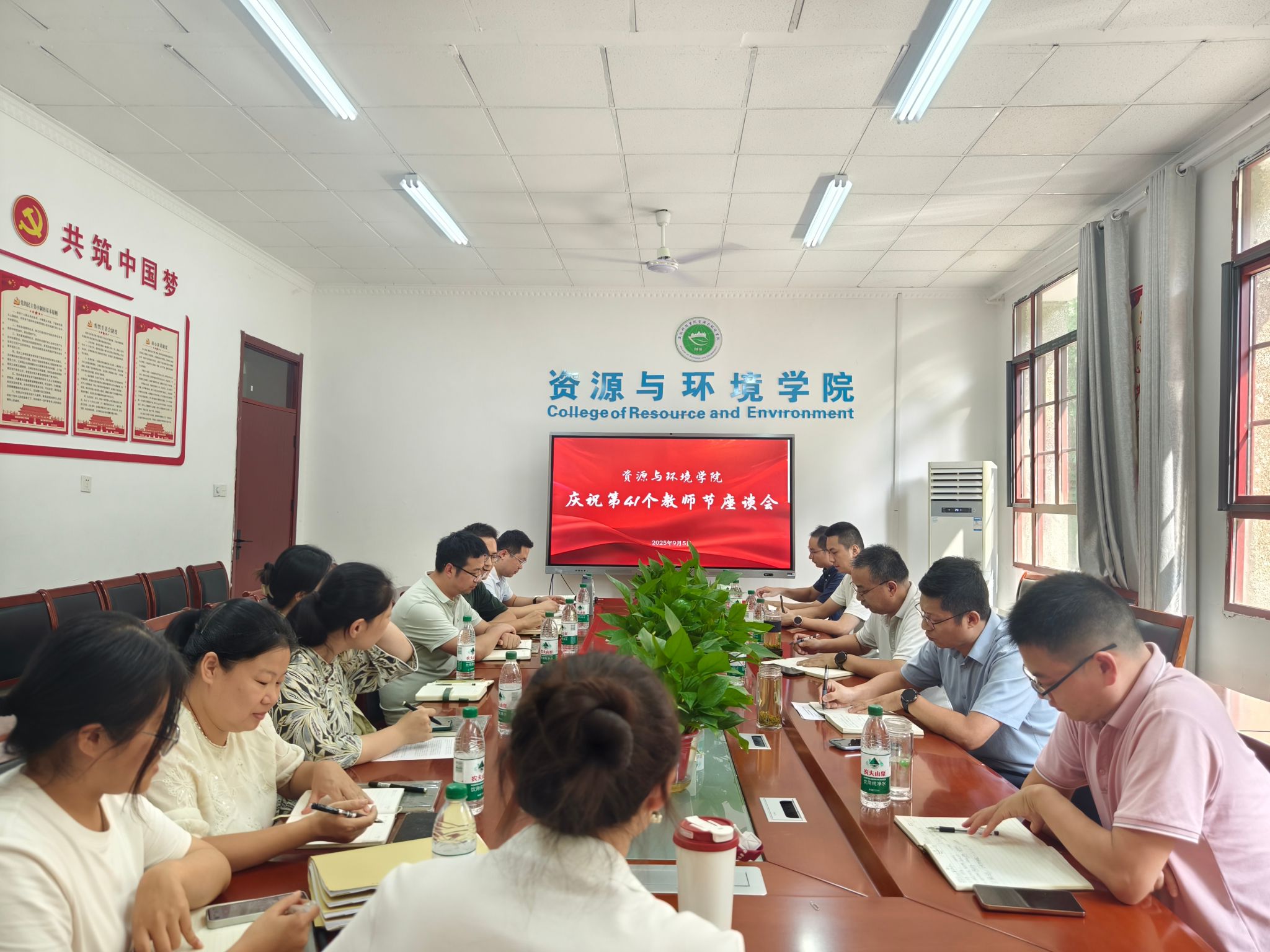 9月5日下午,资源与环境学院精心组织召开了“以教育家精神铸魂强师,谱写教育强国建设华章"为主题的第41个教师节座谈会。学院党政领导班子成员、系主任、工会主席、新进青年教师及辅导员代表齐聚一堂,通过经验分享与思想碰撞,共同谋划学院未来发展蓝图。座谈会由学院党委书记沈树周主持。