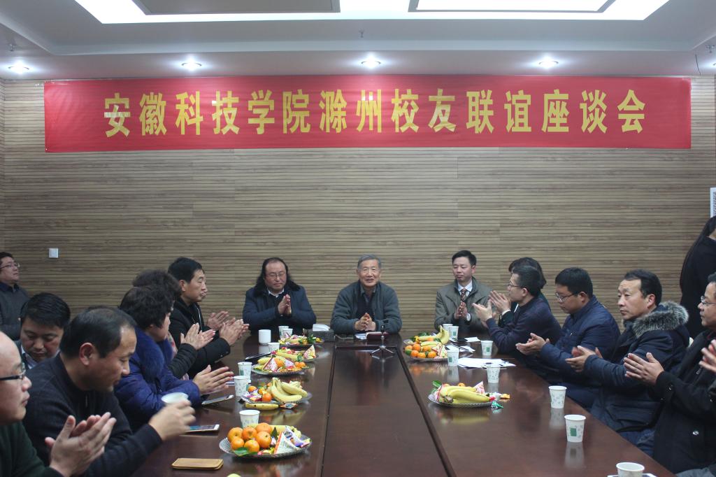 1月8日,我校滁州市校友开展联谊活动,校领导蒋德勤、韦文联等致电祝贺!校友会筹建工作领导组顾问汪元宏应邀出席联谊座谈会,在滁工作校友40余人参会。联谊活动由滁州巨大饲料有限公司董事长、1988届兽医专业校友项武松组织,联谊座谈会由安徽省琅琊山矿业总公司房产副总经理、1992届英语专业校友吴秉宝主持。