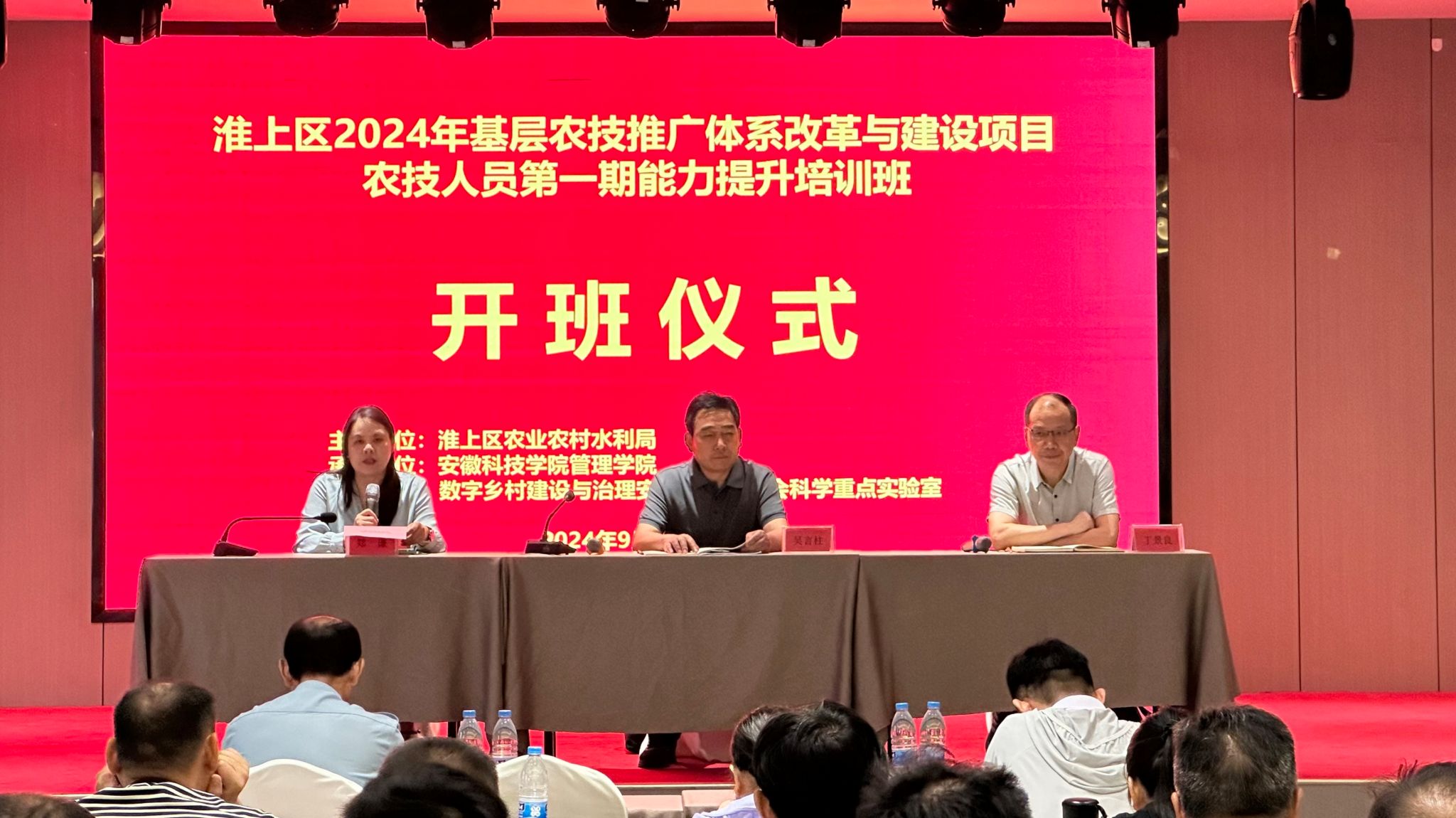为深化基层农技推广体系改革,提升农技人员综合素质,助力蚌埠市乡村振兴。9月18日上午,由淮上区农业农村水利局主办,欧亿官方网页版管理学院及数字乡村建设与安徽省哲学社会科学重点实验室联合承办的“淮上区2024年基层农技推广体系改革与建设项目农技人员第一期能力提升培训班”在蚌埠市淮上区举办开班仪式。淮上区农业综合服务站站长吴言柱,管理学院党委书记丁景良,副院长郑谦出席开班仪式,开班仪式由丁景良主持。