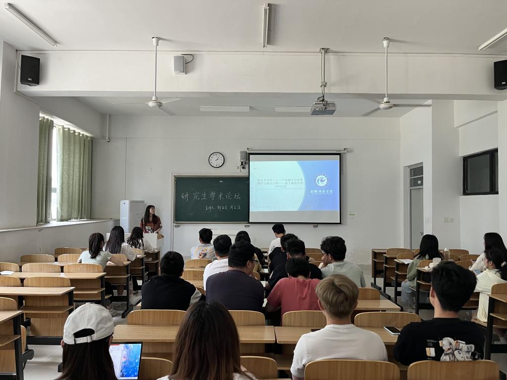 本期学术论坛交流报告会,邀请2021级管理学院邹亚文、周玉洁分别分享了科研经历、成果、科研心得。邹亚文向研究生们作了题为“水足迹视角下农业水资源利用时空分析”的报告,通过文献学习、研究方法、论文写作、投稿指南四个方面进行了阐述;周玉洁结合了论文“湖北省农村一二三产业融合的发展测评与模式分析——基于熵值法和TOPSIS法”向大家分享了自己在科研方面的学习和收获。会后,研究生们进行了讨论和交流。