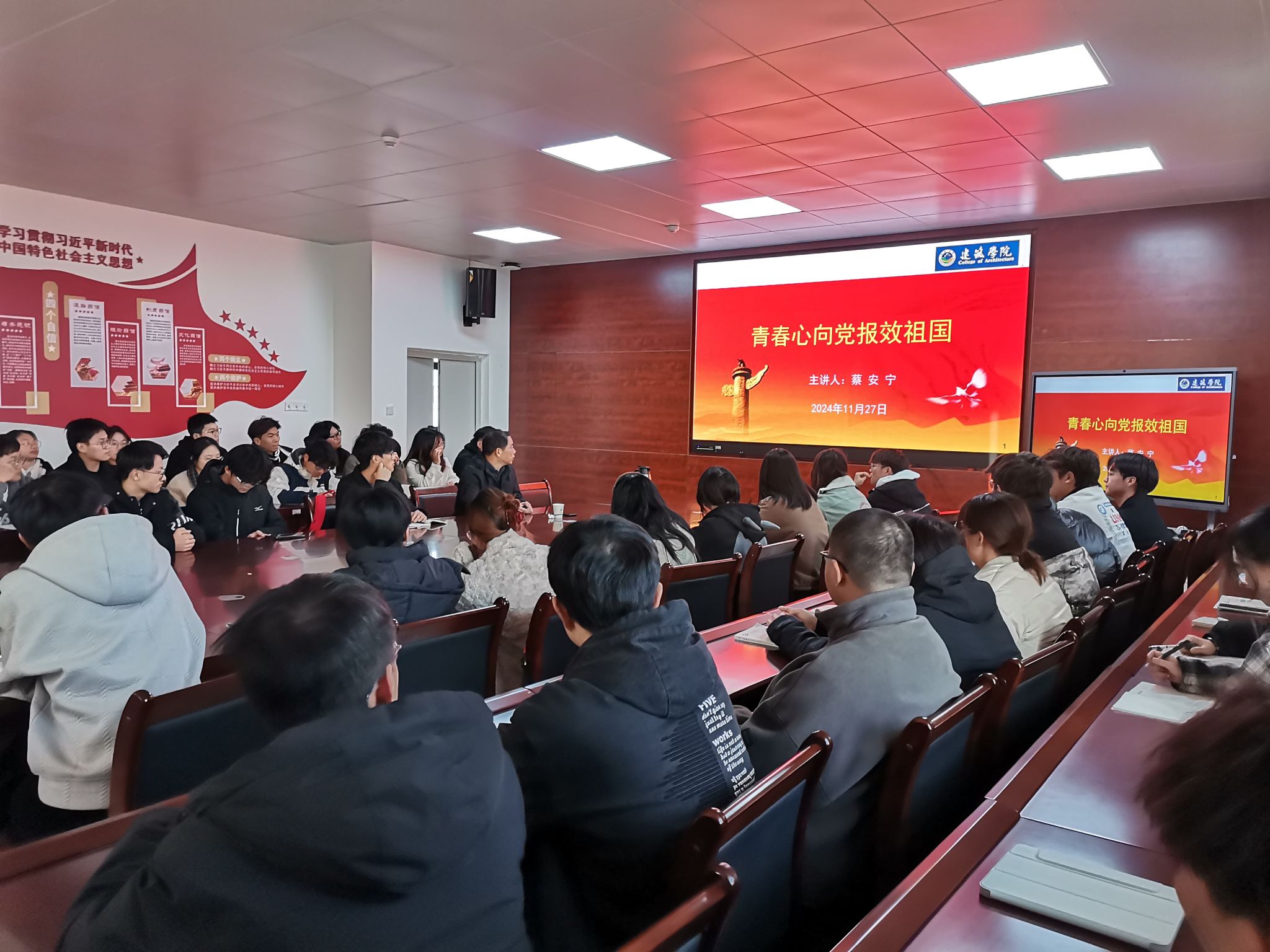 为增强学院分党校第61期入党积极分子培训班的针对性和感染力,11月27日下午建筑学院特邀国土空间规划与治理领域专家、南京晓庄学院教授蔡安宁博士为学员们上主题为“青春心向党 报效祖国”特色党课。本次党课由学院副院长张伟主持,学院61期入党积极分子和新发展党员参加。