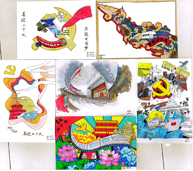 为进一步学习宣传贯彻党的二十大精神,激励大学生坚定理想信念,厚植家国情怀,10月中旬建筑学院结合学生专业特长,组织第57期入党积极分子围绕“喜迎二十大 建功新时代”主题进行绘画创作。