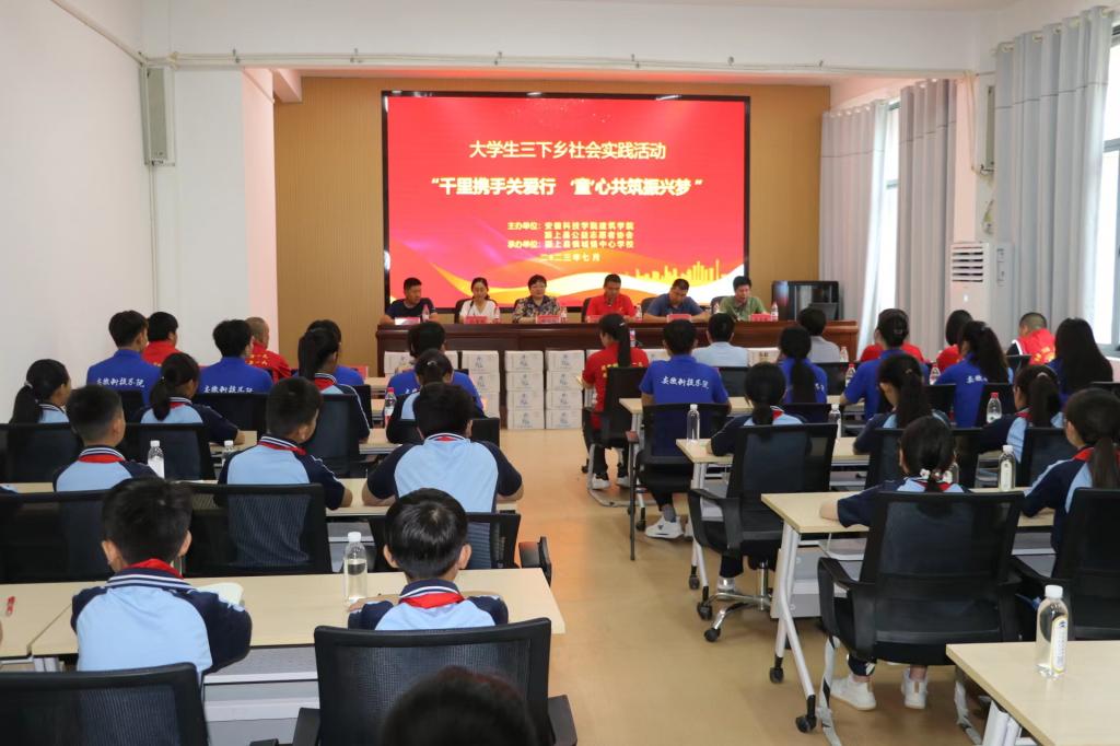 为深入学习贯彻习近平新时代中国特色社会主义思想,强化在实践中受教育、长才干、做贡献,7月15日上午,由欧亿官方网页版建筑学院和颍上县公益志愿者协会主办,颍上县慎城镇中心学校承办的“千里携手关爱行,‘童’心共筑振兴梦”暑期社会实践启动仪式如期举行。建筑学院党委副书记谢宜勤、团委书记沈德艳、团委副书记武辉一行三人前往参加。启动仪式由颍上县公益志愿者协会会长、“中国好人”获得者汤锋主持。