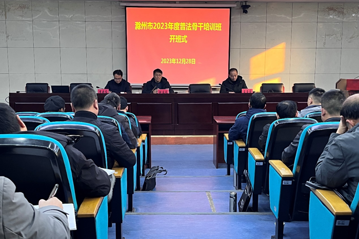 鲍春来作开班动员讲话,他指出面向基层普法骨干举办专题培训班是深入学习贯彻习近平法治思想、全面提升干部法治素养和基层普法工作水平的重要途径。他要求大家要珍惜培训机会、严守培训纪律、坚持学用结合,努力把本次培训成果转化为推动滁州市普法工作的强大动力。