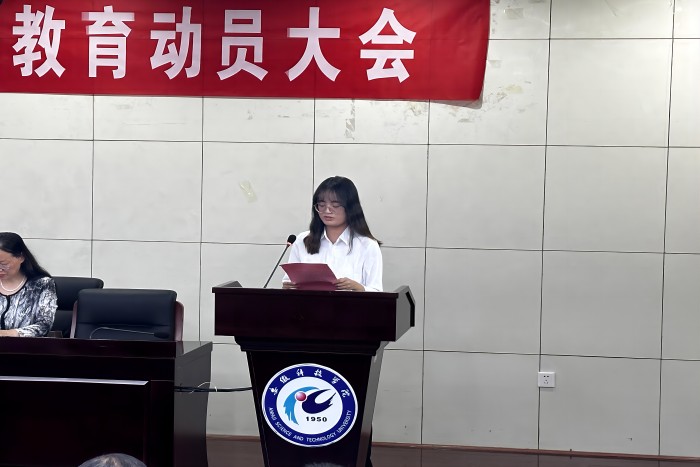 学院党委副书记张海亮做入学教育动员讲话,向新生提出坚定理想信念、勇担时代重任,践行核心价值观、擦亮青春底色,科学规划人生、促进全面发展,严格遵守纪律、打造良好班风,提高安全意识、确保身心健康等五点希望。要求学生树立正确世界观、人生观和价值观,刻苦学习,励志成才。